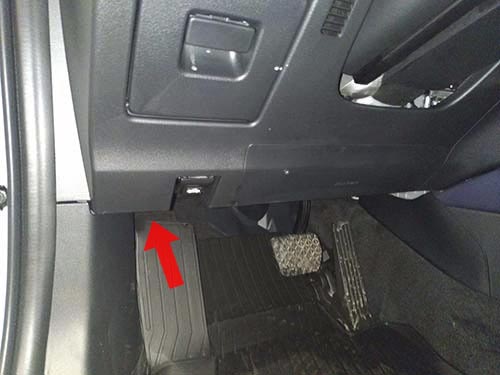 Разъем расположен под рулевым колесом с левой стороны, над площадкой для левой ноги, рядом с рычагом открывания капота.